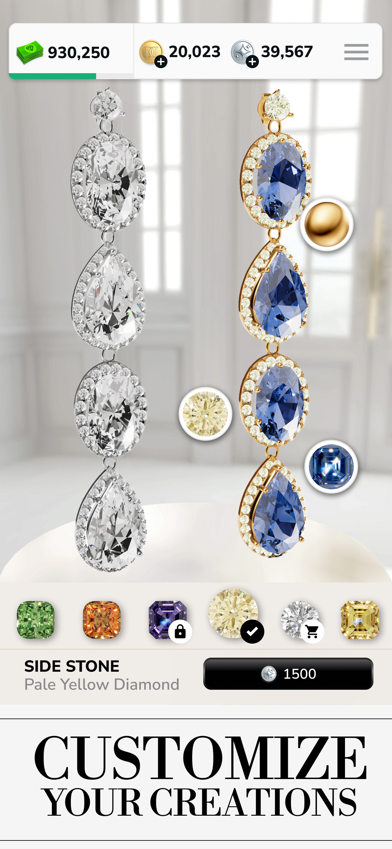 The Diamond Jewels Venetia Clover Set with gold, enamel, amethysts and diamonds. Play Diamond Jewels during season 6 to collect it!
